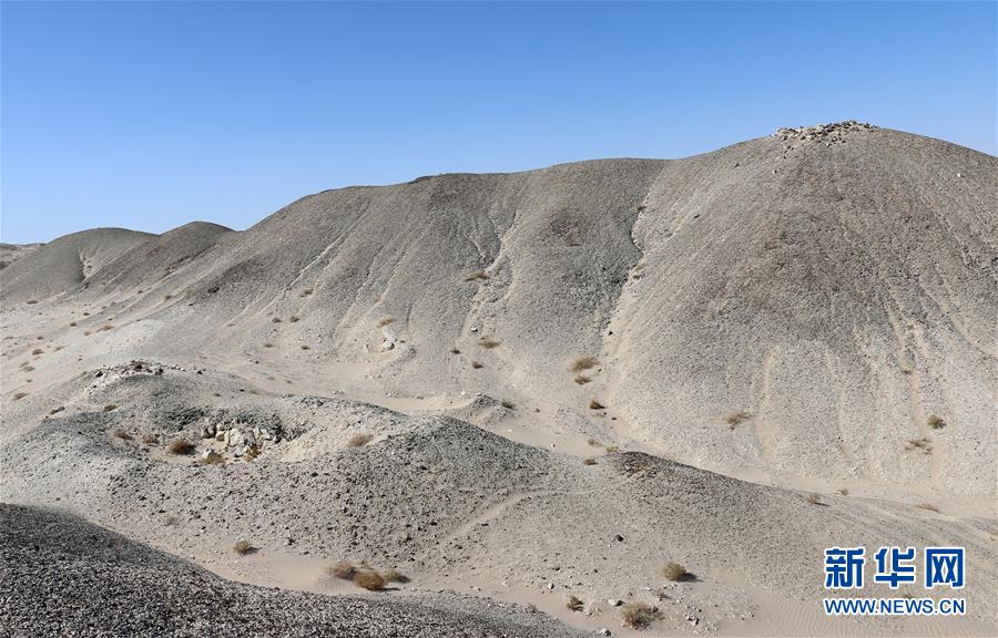 甘肃敦煌旱峡玉矿遗址第二地址东部岗哨、矿坑、选料区分布环境(材料照片)。新华社发(外国文物报社供图)